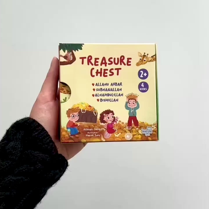 Introduce your little ones to the beauty of Islamic phrases with the Treasure Chest series! This delightful collection of four board books helps young children learn the meaningful words SubhanAllah, Alhamdulillah, Bismillah, and Allahu Akbar in an engaging and interactive way, encouraging early learning and Islamic values.