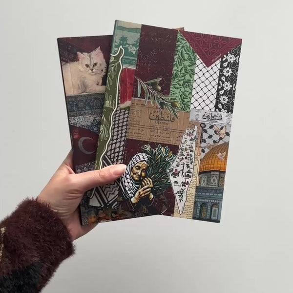 This premium A5 dotted notebook features two meaningful collage designs inspired by Türkiye and Palestine, bringing culture, memory, and everyday creativity together in one elegant stationery piece.