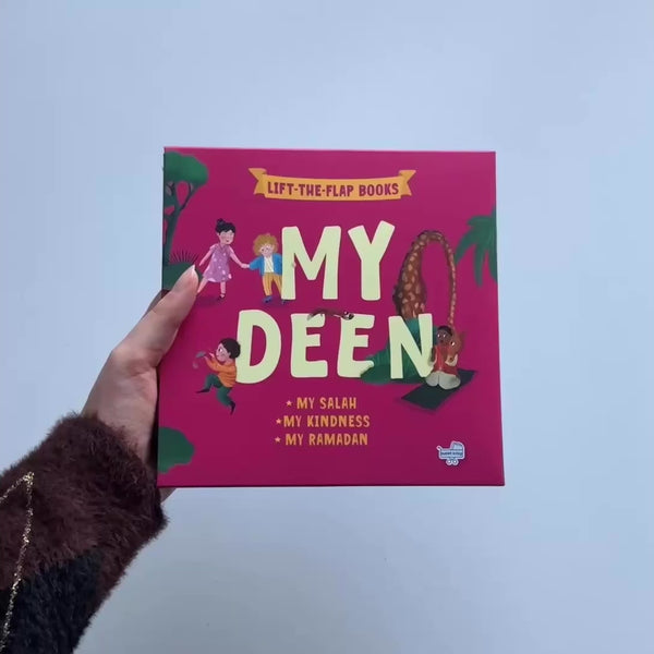 The My Deen Book Set is a beautifully designed collection of three interactive board books that introduce young children to core Islamic values through curiosity, warmth, and everyday moments.